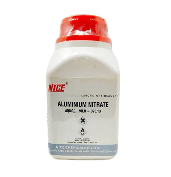 Aluminum nitrate is a white, water-soluble salt of aluminum and nitric acid, most commonly existing as the crystalline hydrate, aluminum nitrate nonahydrate, Al(NO₃)₃·9H₂O.