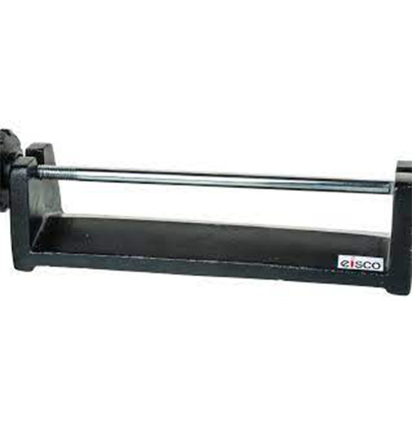 Bar Breaking Apparatus is used to show the forces which can be exerted during thermal expansion or contraction. It comprises a heavy cast iron frame with slotted end pillars to carry a stout iron bar. The bar is threaded at one end for a large tensioning nut and has holes at the other end to accommodate the cast iron breaking bars. It is supplied complete with breaking bars