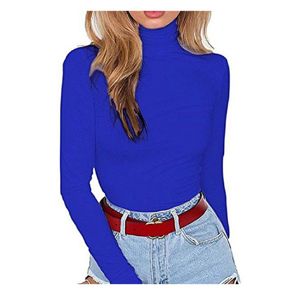Blue Stretchy Turtle Neck Top