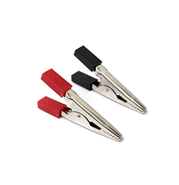 A crocodile clip (also alligator clip) is a sprung metal clip with long, serrated jaws which is used for creating a temporary electrical connection.