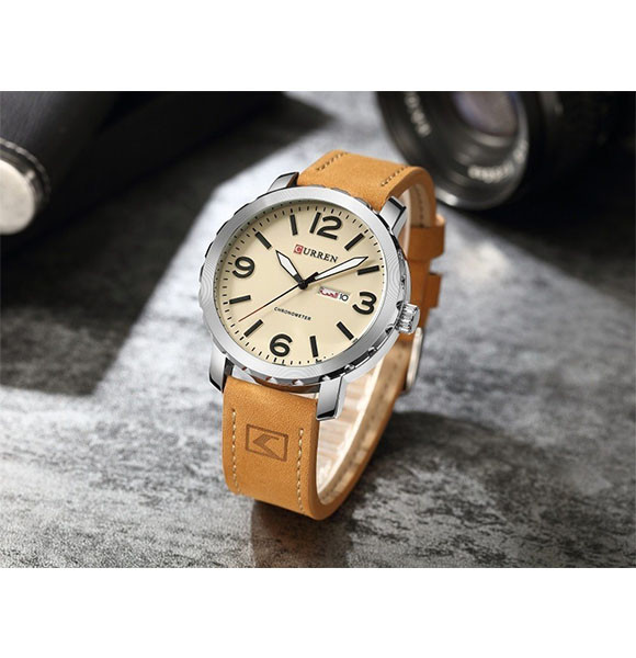 Curren Watches Luxury Quartz Leather Band Wristwatch 8273,Black&Brown
