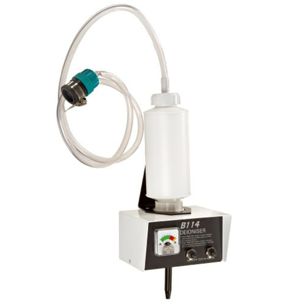 The deionizer is a cost-effective stand-alone system that provides low to medium volumes of primary or deionised grade water. Water quality is easy to monitor, with a color coded resistivity indicator displaying treated water quality