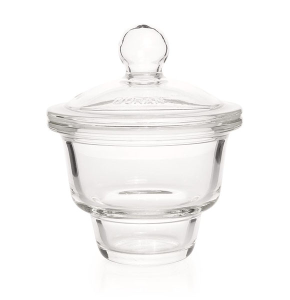 It is a round shaped closed vessel made of heavy glass which is a common laboratory glassware item and has multiple uses, such as: Storage of standards under dry environment. Storage of materials for weighing to constant weight. Prolonged storage of hygroscopic materials.