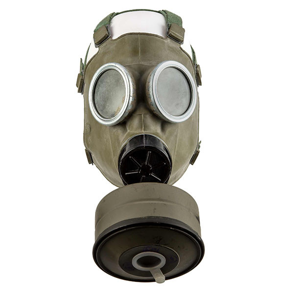 • gas mask, breathing device designed to protect the wearer against harmful substances in the use of special protective clothing in addition to gas masks.