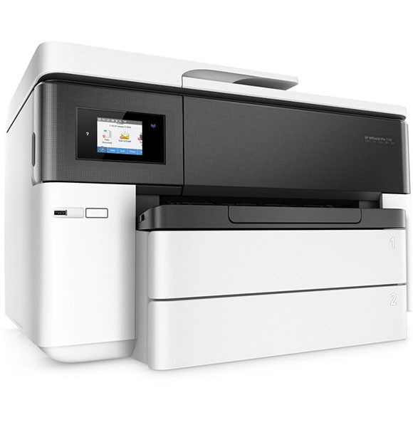 • Do almost everything you need with the OfficeJet Pro 7740 Wide Format All-In-One Inkjet Printer from HP which offers printing, scanning, copying, and faxing, as well as the ability to work with large 11 x 17″ and A3-size documents. Printing is with quality and speed thanks to a maximum resolution of 4800 x 1200 dpi and ISO rated outputs of 22 ppm in black and 18 ppm in color. Borderless printing and automatic duplexing is available as well to further expand your printing capabilities. For scanning, copying, and faxing, the 7740 has both a flatbed and ADF for scanning. This uses an optical scan resolution of 1200 dpi for sharp images and the flatbed is a notably large 11.7 x 17″.