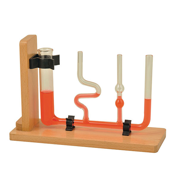 The Liquid Level Apparatus shows that level of liquid in communicating vessels is constant irrespective of the size or shape of the vessels.