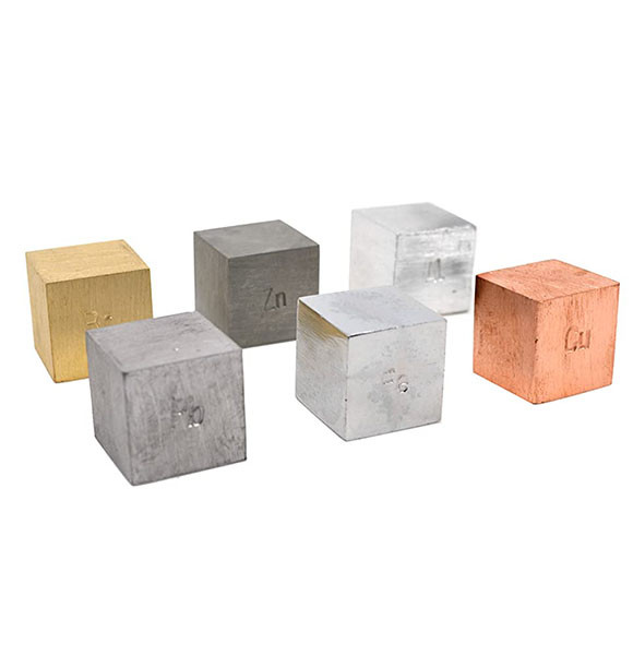 • This set includes 1 cube each of aluminum, brass, copper, iron, lead, and zinc without hook.