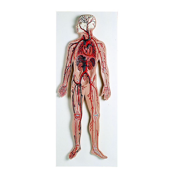 This model is an excellent representation of the human vascular system. The 3/4-life-size model, sturdily constructed of hardened plastic-coated metal wire, is supported by a metal rod. This model is mounted on a metal stand.