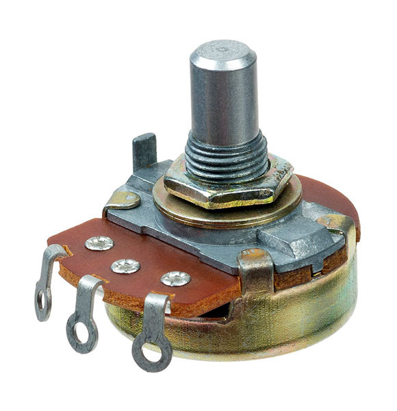 A potentiometer is a three-terminal resistor with a sliding or rotating contact that forms an adjustable voltage divider. If only two terminals are used, one end and the wiper, it acts as a variable resistor or rheostat.