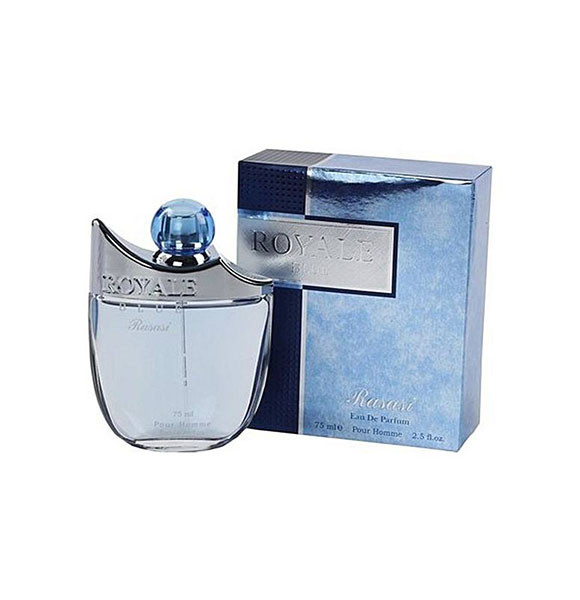 Royale Blue by Rasasi is a Woody Floral Musk fragrance for men. Top notes are sea notes, bergamot, melon and galbanum; middle notes are lavender, violet, rose and jasmine; base notes are patchouli, cedar, sandalwood, amber and musk