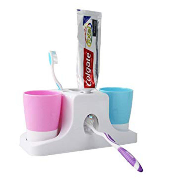 This dispenser allows you to quickly, easily and neatly dispense just the right amount of toothpaste directly onto your brush. One-touch automatically squeeze application. It comes with a toothbrush holder which enables you to store up to to five toothbrushes hygienically. Comes with wall mounts for sticking to the wall