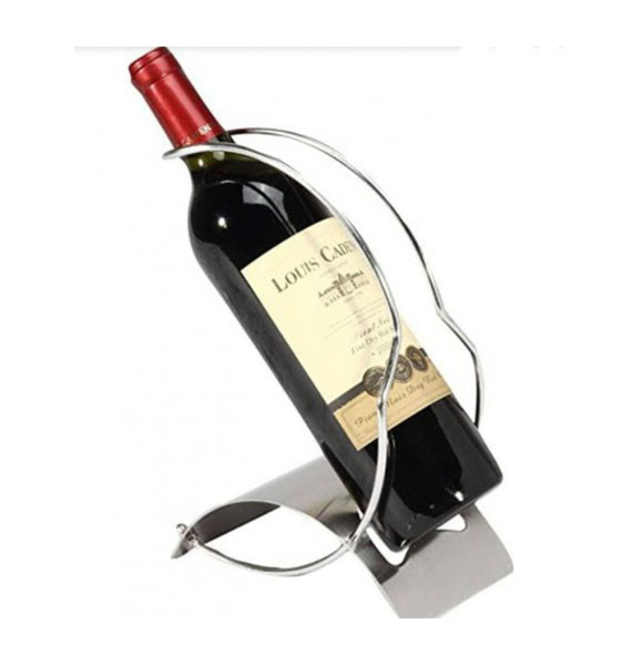 modern wine holder perfect for showing off your favorite bottle of wine.Graceful curved stainless steel bars also act as a handle for pouring your favorite bottle of wine.For larger parties or gatherings, have a number these wine racks as elegant tabletop / countertop centerpieces.High quality stainless steel construction.;Approximate Dimensions: 7.1 L X 4 W X 10.1H