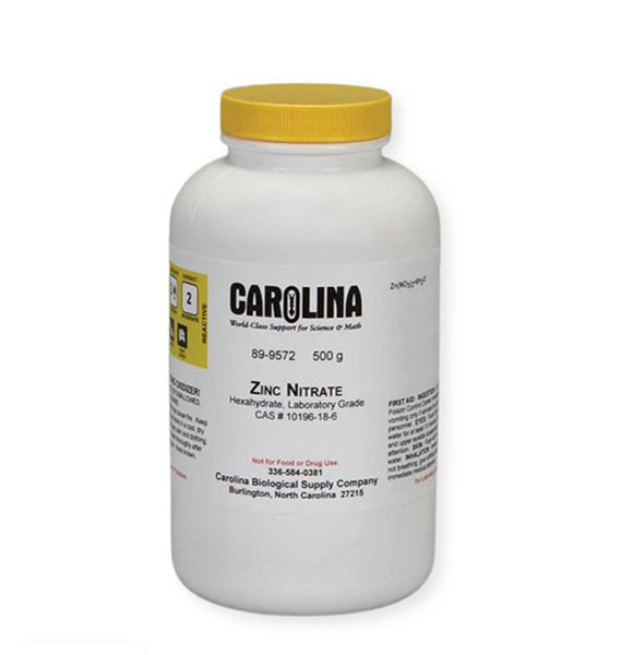Zinc nitrate is an inorganic chemical compound with the formula Zn(NO₃)₂. This white, crystalline solid is highly deliquescent and is typically encountered as a hexahydrate Zn(NO₃)₂•6H₂O. It is soluble in both water and alcohol.